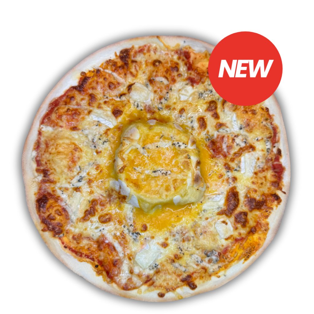 pizza Čtyři druhy sýrů s kráterem roztaveného teplého sýra uprostřed